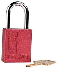 La serie de candados de bloqueo X-05 posee una base compuesta de una aleación de materiales exclusivos de aluminio anodizado de alta visibilidad. Posee un grillete de acero endurecido y cromado otorgando una alta resistencia a la corrosión. Posee un cilindro de 5 pines otorgando distintos tipos de combinaciones. Colores varios.