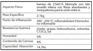 son mangas de polipropileno rellenas de fibras de orgánicas naturales, ideales para ser utilizadas en derramamientos de hidrocarburos sobre agua.